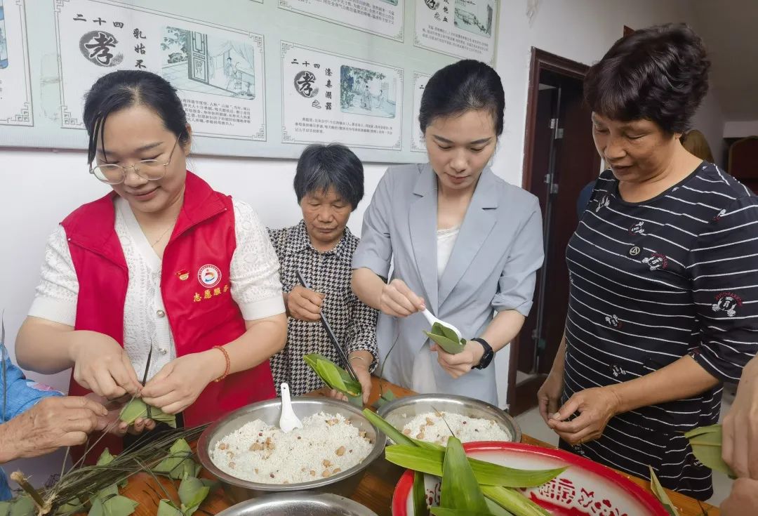 下渠鎮:粽香迎端午 共系銀齡情 下渠鎮開展“黨建引領‘鄰’聚力 銀齡互助‘粽’情親”主題活動。志愿者和40余位銀齡老人們一起跳健康操,學習傳統樂器,一起包粽子、話家常,共迎端午。